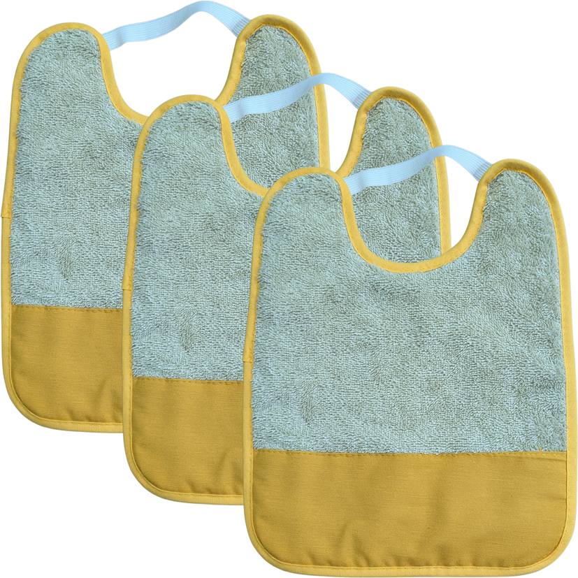 Estos encantadores baberos está confeccionado en suave rizo de algodón de alta calidad, ideal para proteger la ropa del bebé durante las comidas. Presenta un diseño elegante en tonos Mostaza, con goma elástica para un ajuste cómodo al cuello del bebé.